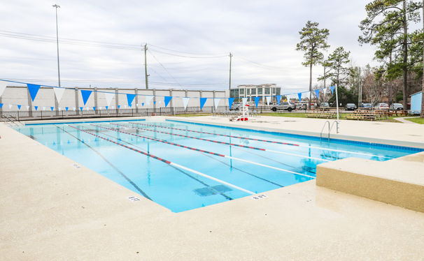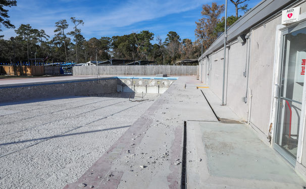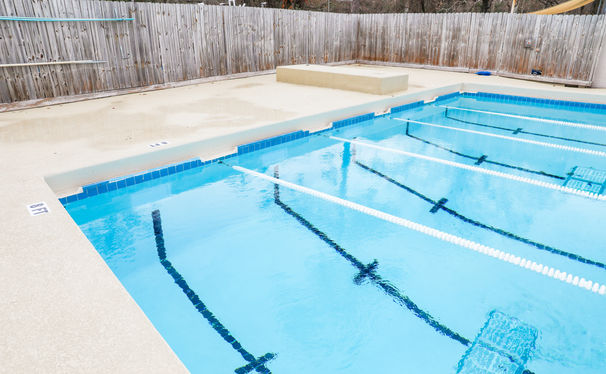 The outdoor, 5-lane competition and lesson pool at the Dad's Club in Spring Valley was first built in the 1950s. The plaster was very discolored and the deck needed some work. Progressive was able to completely strip the 33-yard uniquely-shaped polygonal pool, and replace over 5,000-square-feet of plaster. The surrounding deck areas were also recoated, some missing and chipped blue tile was replaced, and black tile was added to both stair entries.